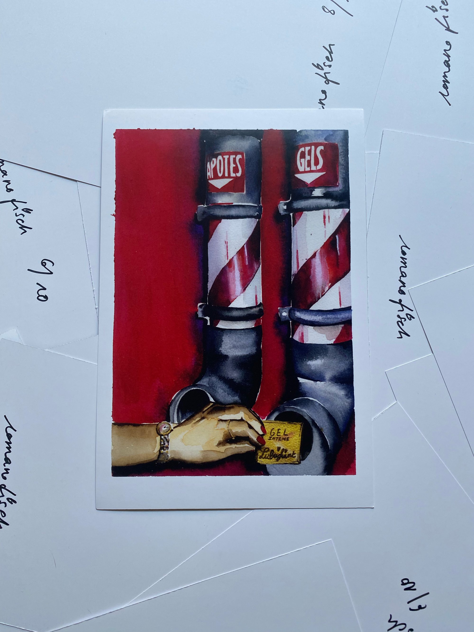 Peinture à l'aquarelle à la main réalisée d'après photographie argentique.
