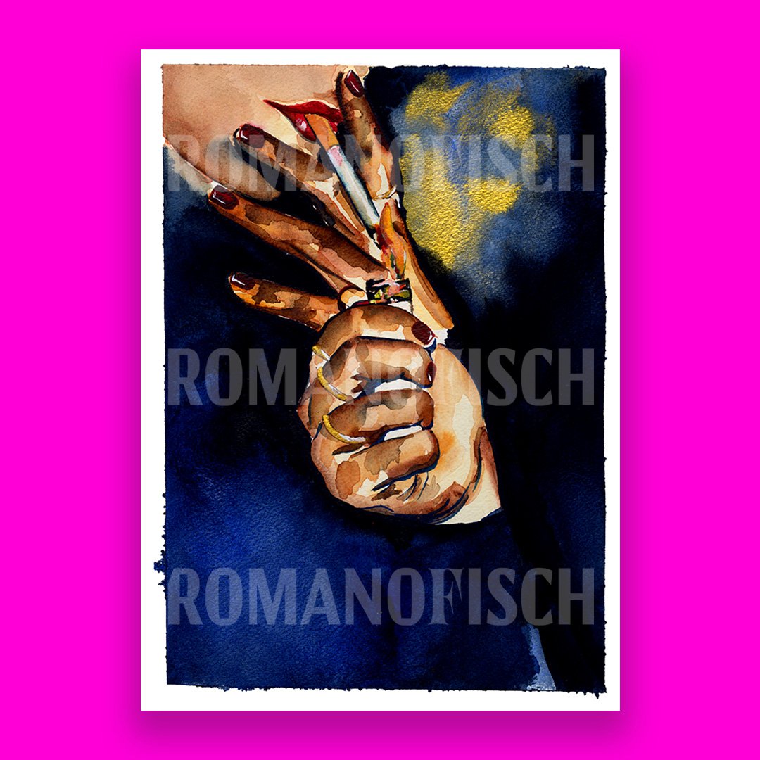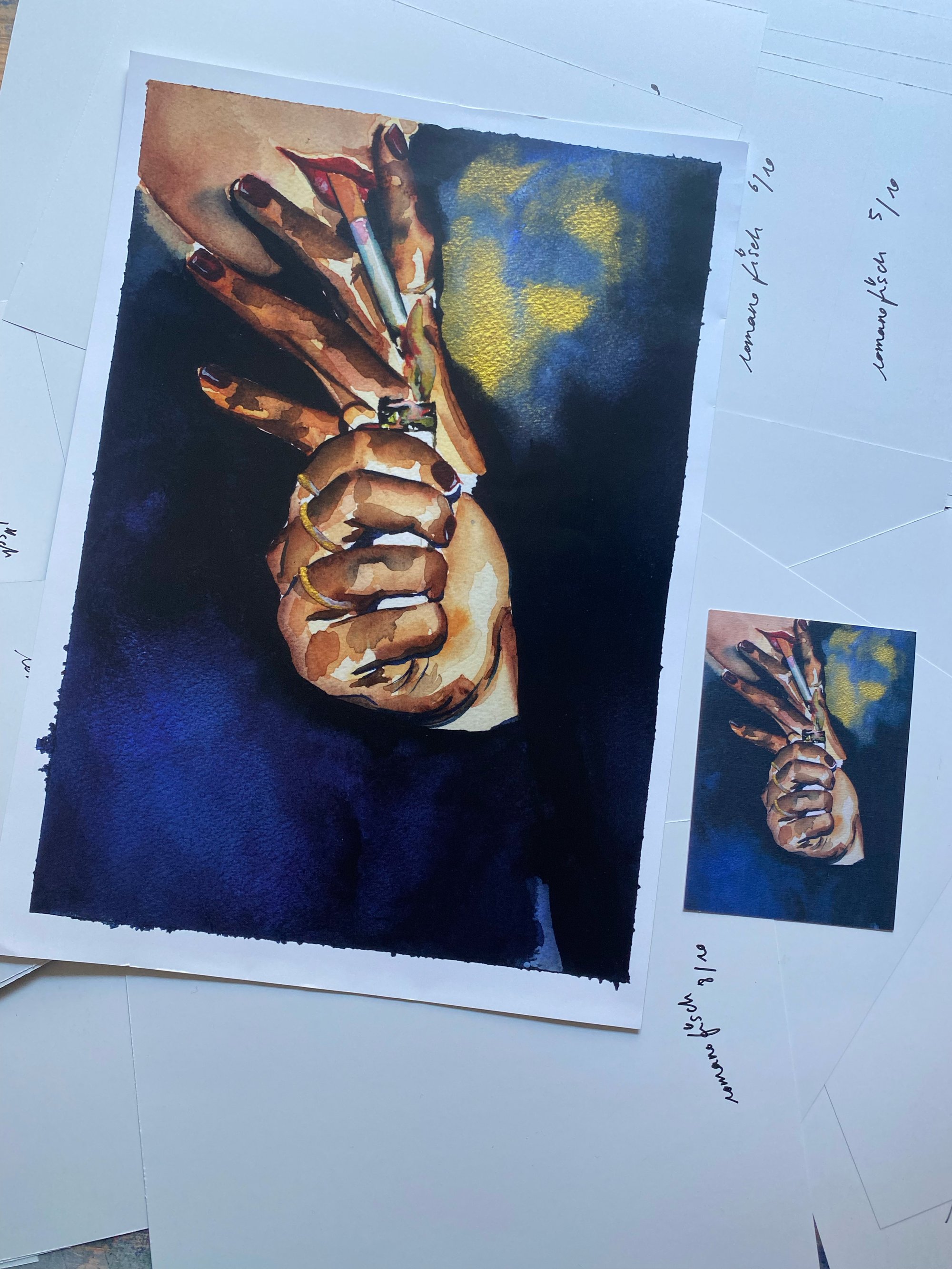 Peinture à l'aquarelle à la main réalisée d'après photographie argentique.