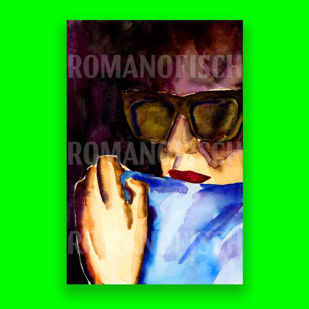 "Discrètement" print Peinture à l'aquarelle à la main réalisée d'après photographie argentique. Reproduction et retouche numérique par l'artiste.