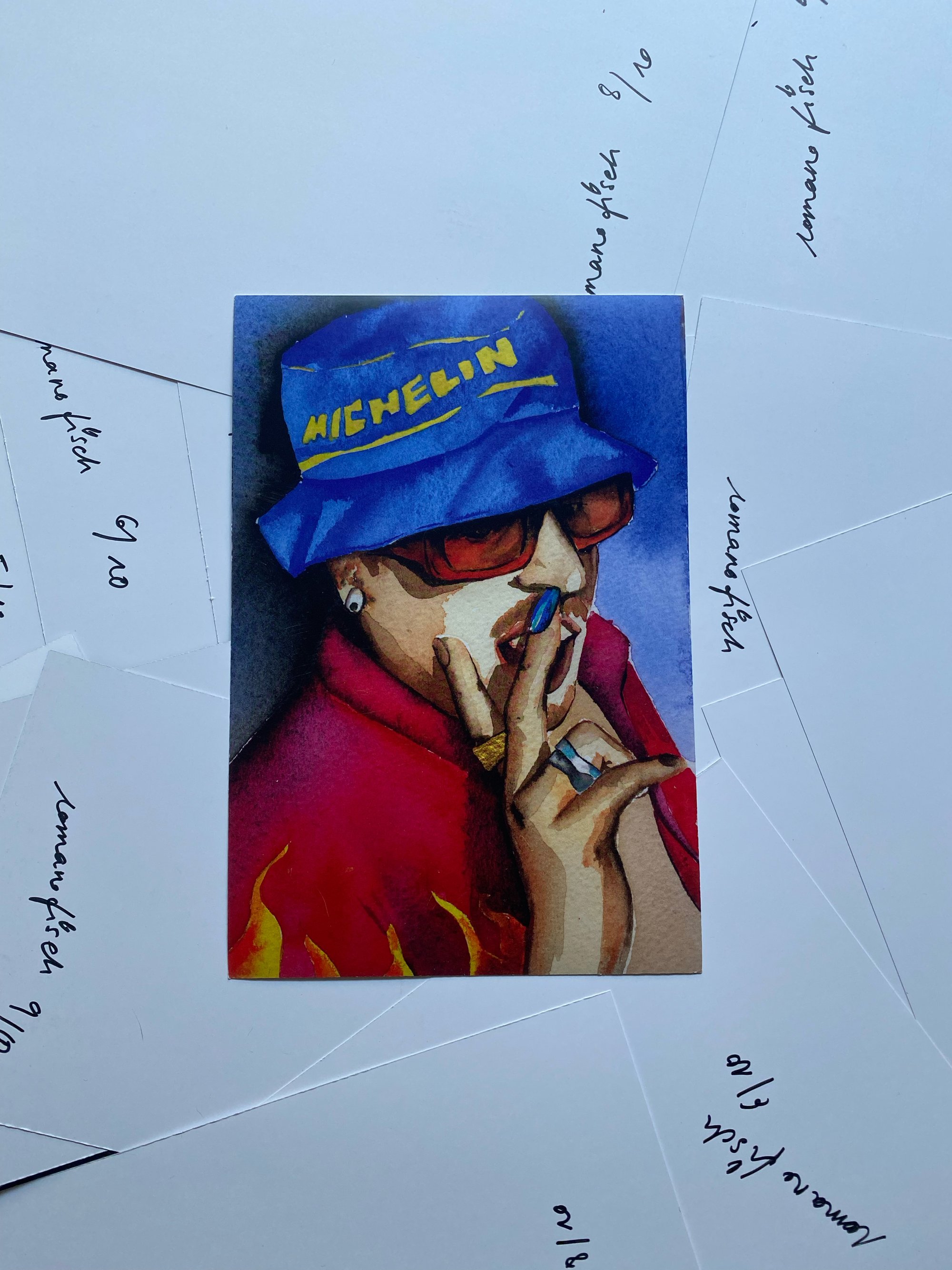 Peinture à l'aquarelle à la main réalisée d'après photographie argentique.