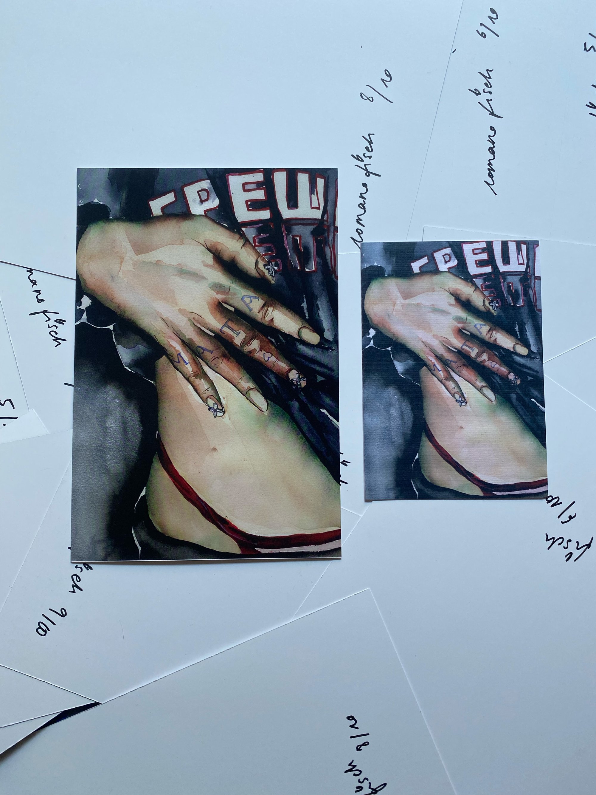 Peinture à l'aquarelle à la main réalisée d'après photographie argentique.