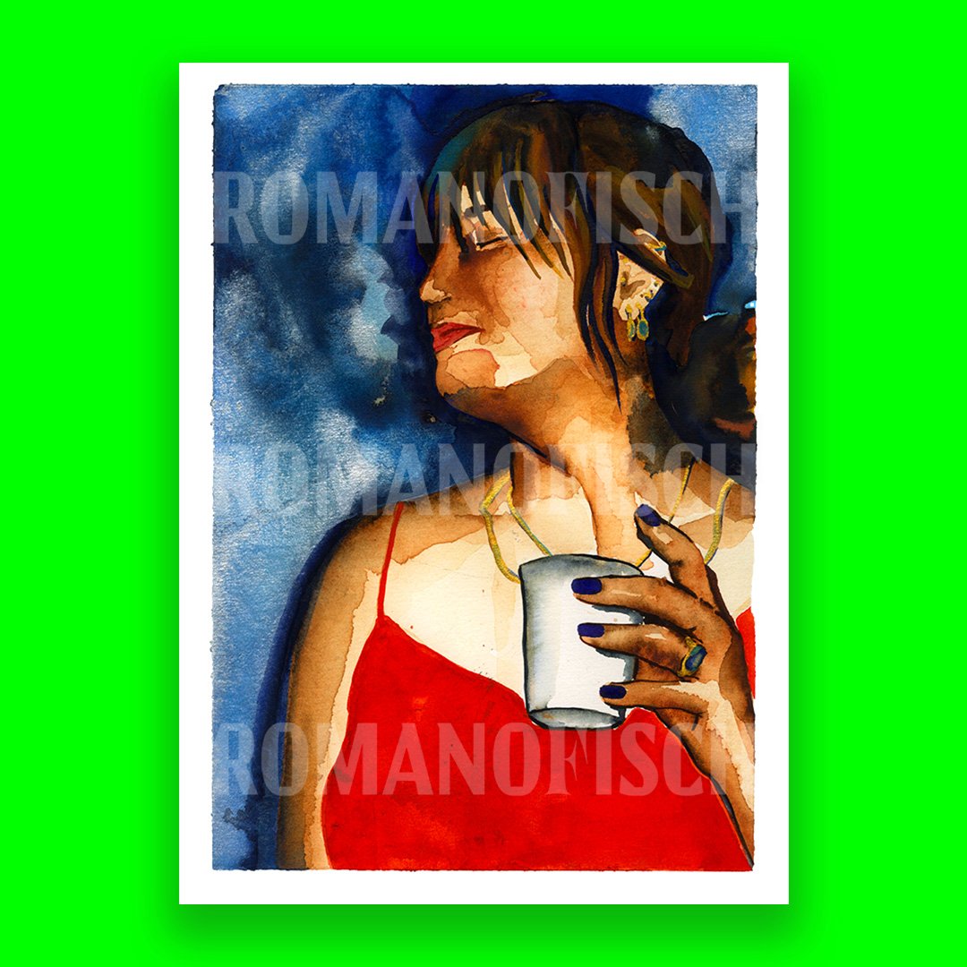 Peinture à l'aquarelle à la main réalisée d'après photographie argentique.